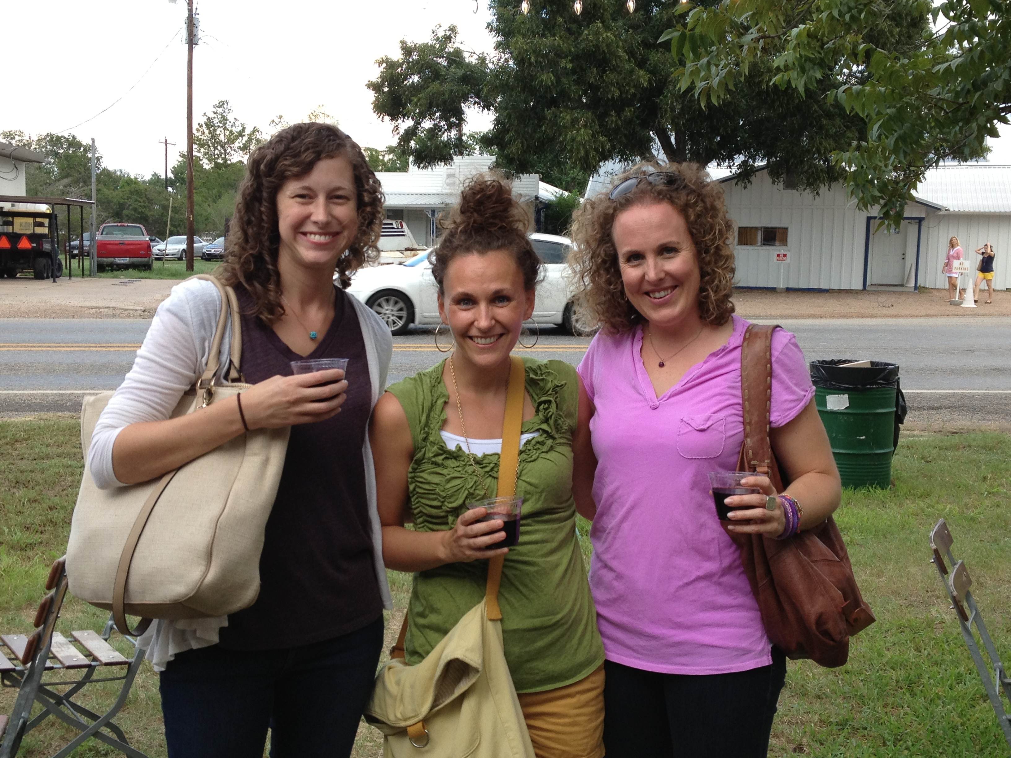 Speaking of attention, I’m still reading my church lady book about where I should be finding my identity (which is a good thing because based on my mosey-along pace and general weak muscled-ness, I can confidently proclaim that I won’t be finding my identity at CultFit). I also went on that women’s retreat I mentioned. Here’s a picture of me and my two sweet girlfriends when we drove off campus between sessions and found a wine booth. (Kidding!)