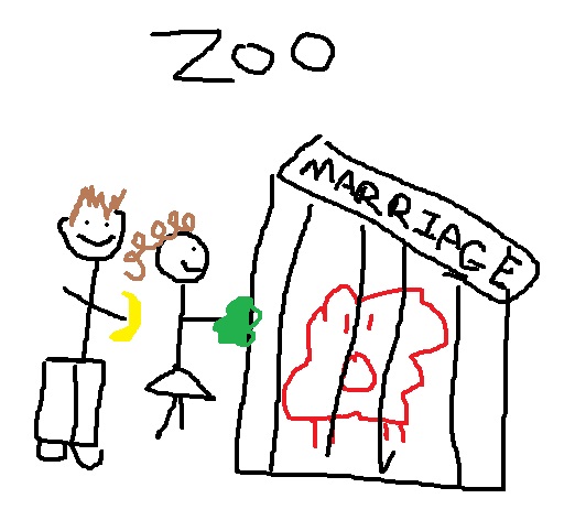 I LOVE your drawings on this blog, too. The food at the zoo is cute. Poor marriage in the cage…