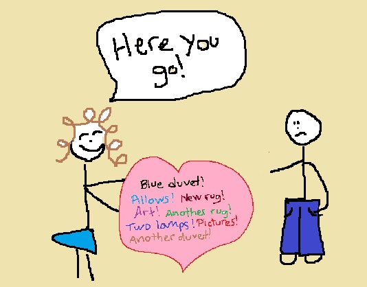 For the past week, I have spoken to my husband about very little other than the pros and cons of a blue duvet vs. a cream comforter and whether or not we should buy a new dresser. Finally, a few nights ago, he asked…