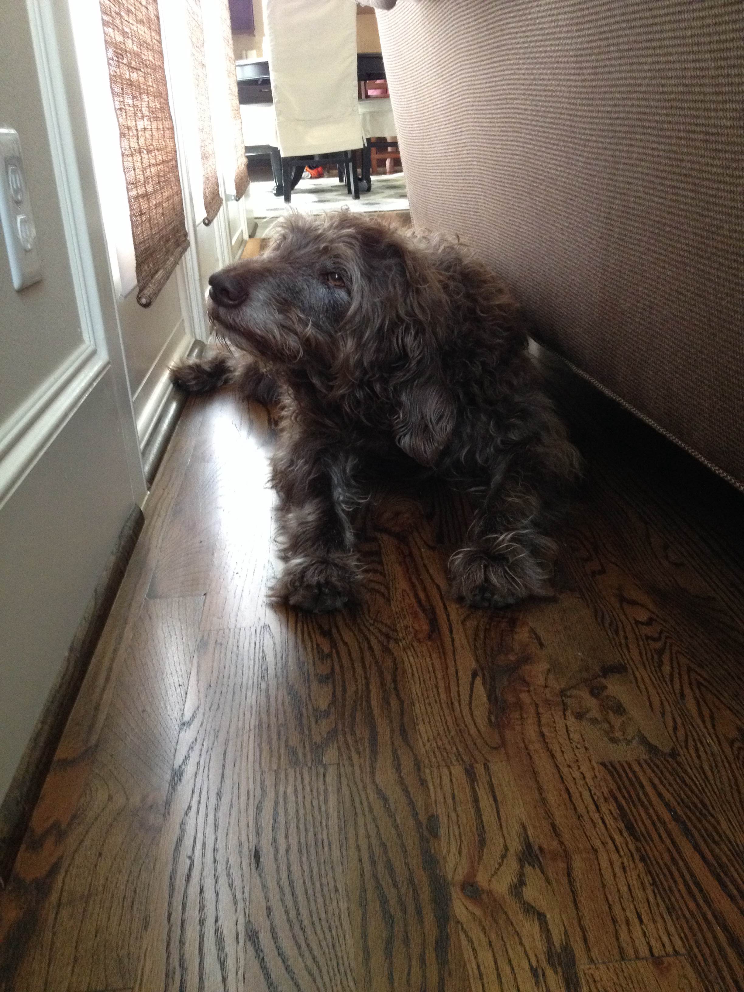 Cowboy almost died. It started when he sneezed and blood shot out of his nose all over my friend Ann’s living room. I was there alone, as I was dropping Cowboy off for Ann to babysit while I went out of town. I grabbed my phone and called Ann, frantically explaining the situation. Unfortunately, Ann’s biggest fear in life is being wrongly accused of a murder and going to prison, so as I scrubbed the blood from her hardwoods, I broke the news to her that if she’s ever accused of murder and the cops show up and turn that light thing on her floors like in Dateline, they’re going to see all kinda blood in that room. And to make matters worse, it’ll look like someone tried to clean it up.