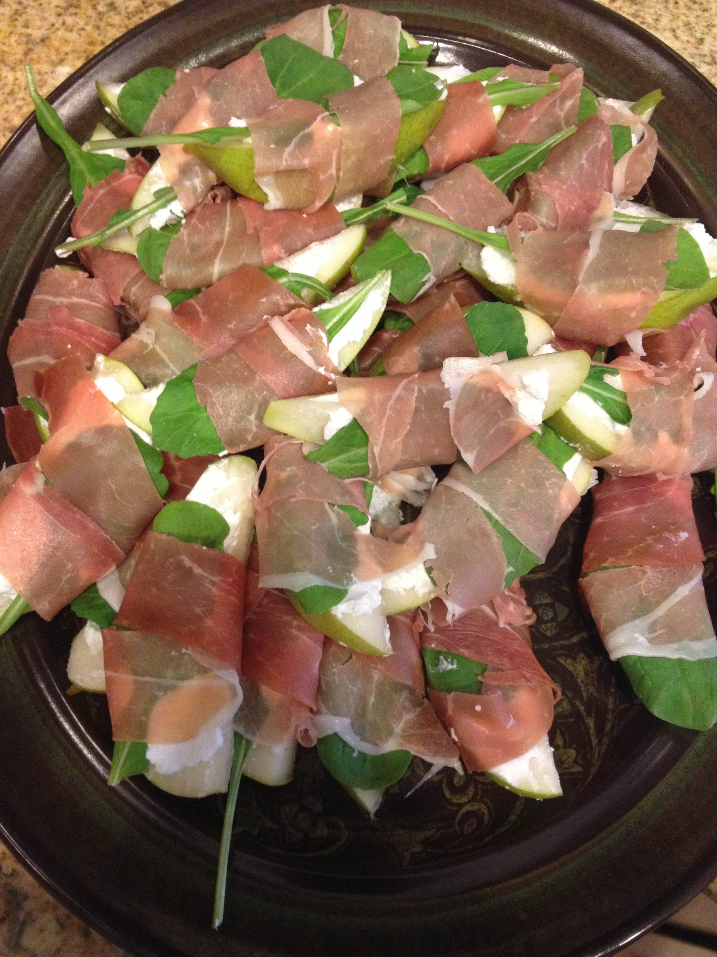 2. Smear a glob of spreadable goat cheese or boursin cheese on the pear.