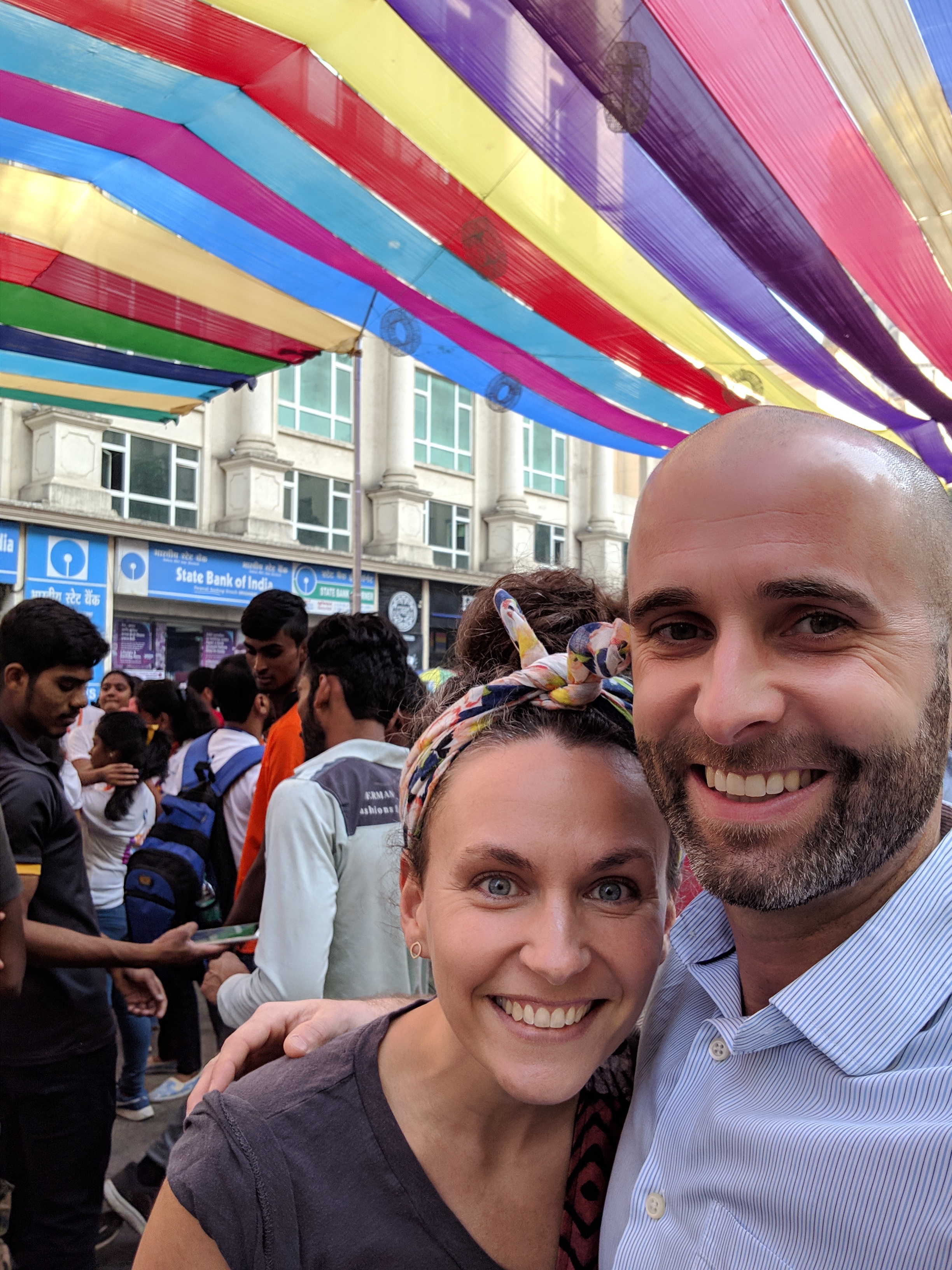 Once across the street we saw signs for a 5K taking place that day and realized the race had just ended. The street had closed down and we walked through groups of happy Indian men dancing in their medals and track shorts. Women danced in a separate group, cheering each other on. We were the only two white folks there and nobody so much as glanced twice at us. It was really quite fun. I loosened the grip on my purse. We can do this. We can live in India!