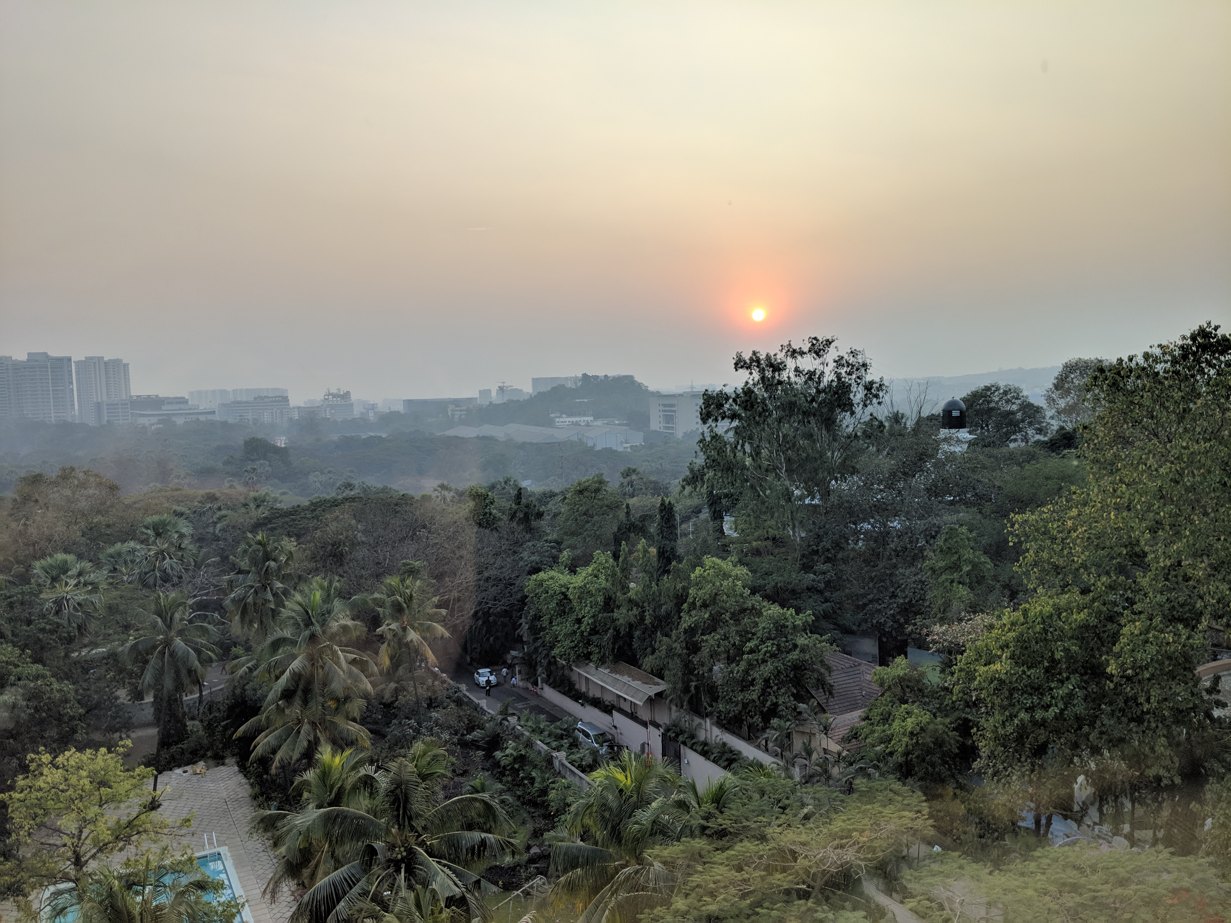 From my window I can see slums; the croc-filled Lake Powai; air so thick with smoke that many days I can’t make out the buildings across said lake; a Hindu temple; dozens of sari-clad women; one of the scant well-fed dogs of Mumbai sniffing every vehicle that enters the property; palm trees. In a city of cement and trash and dirt, my view is expensive, luxurious, and I know once we move to a permanent apartment, I’ll miss it. I try to balance that with the thought of the people actually living in that garbage. I land nowhere.