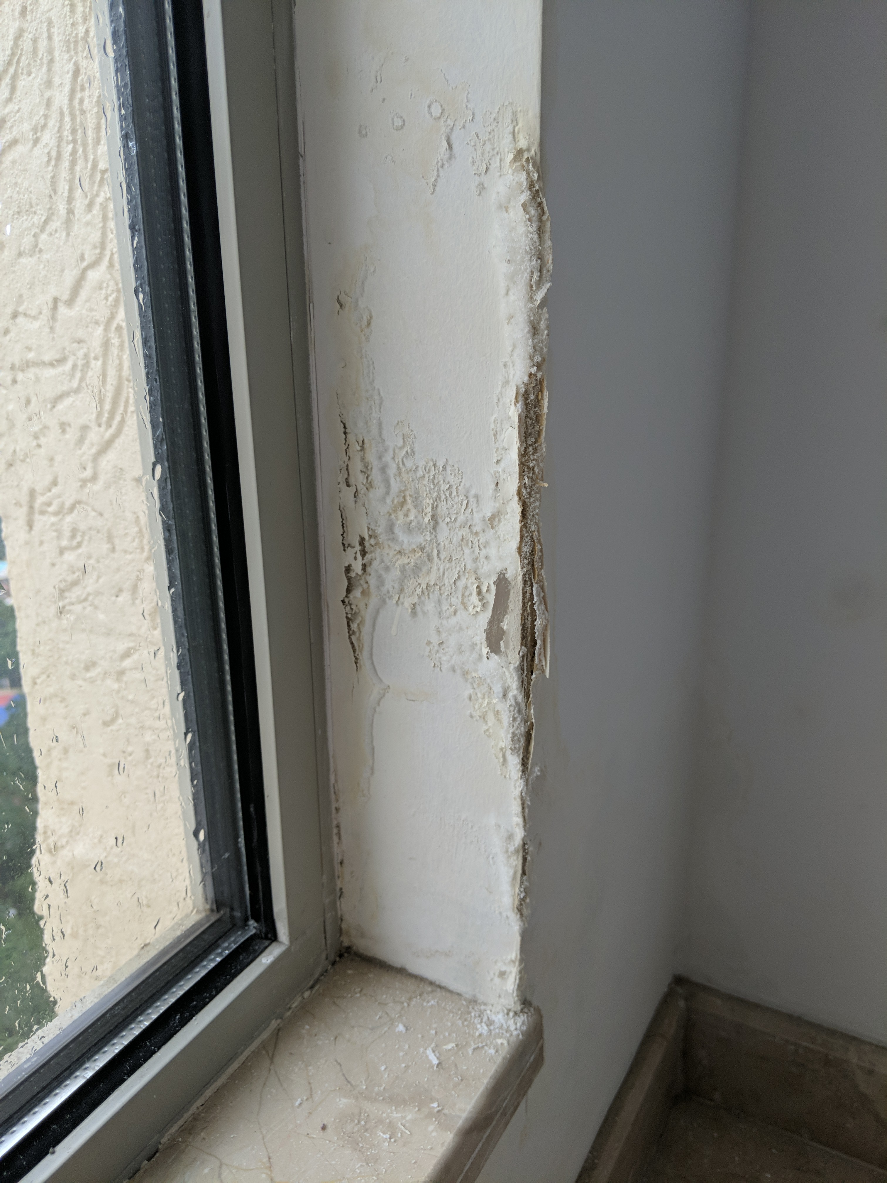 They still haven’t come to repair the leak. The sheetrock is growing more crumbly and I see patches of white fluff.